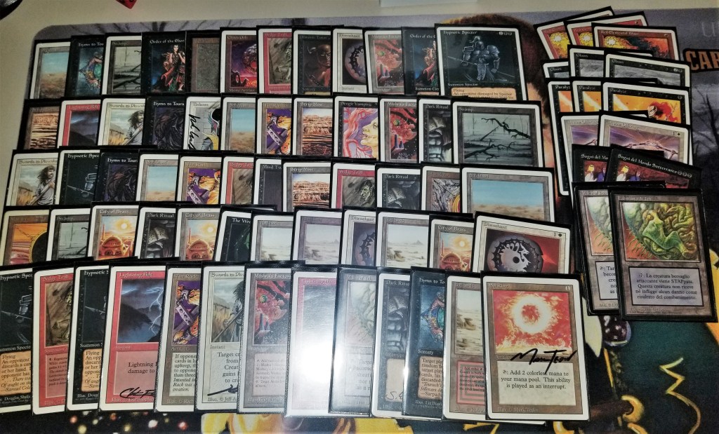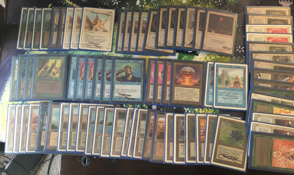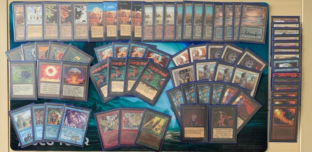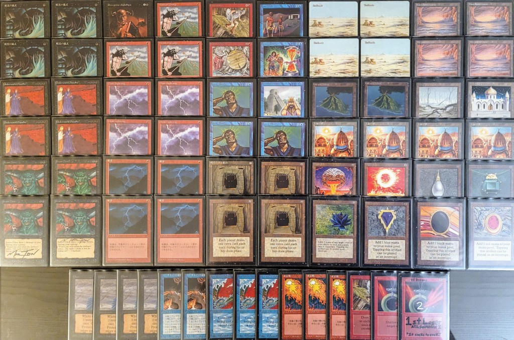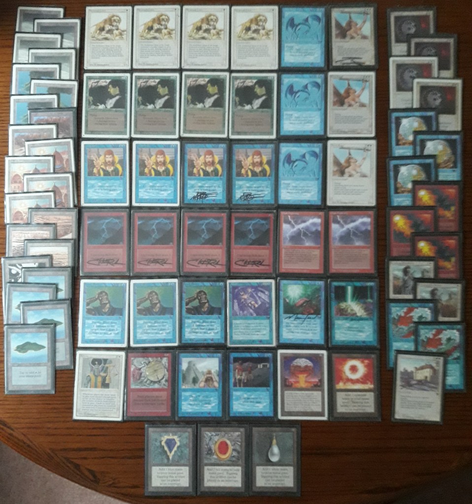 The LIGHTNING BALL, a one-day webcam Old School Magic tournament, was held on Saturday, November 21st, 2020. A total of 86 players representing eight different time zones and at least two dozen regional Old School clubs participated. Deck construction rules for the event used the Eternal Central B&R list. The structure of the event was straight Swiss pairings, 50-minute rounds, just as one might expect at a “real-life” paper tournament. All of the matches for the event were played using Whereby, one of the video chat platforms of choice for the 93/94 webcam scene.