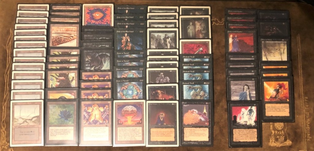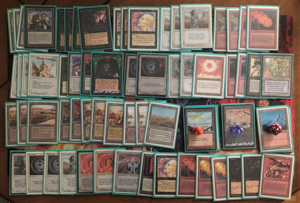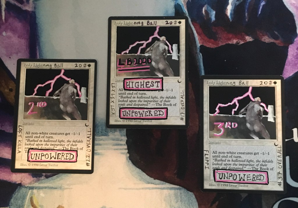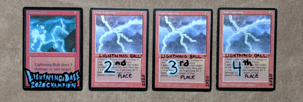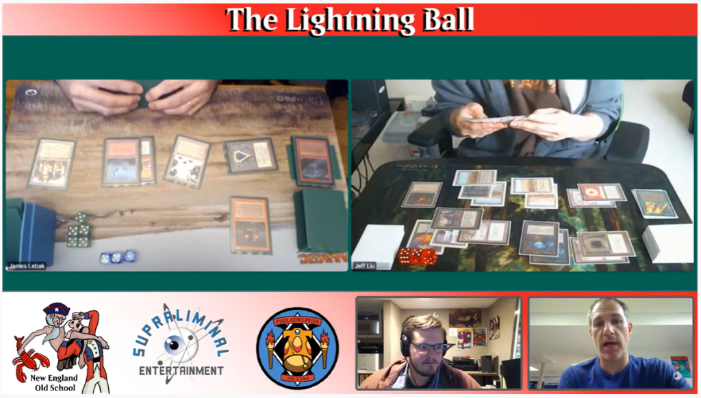 The LIGHTNING BALL was the latest in a trend of “same day” webcam events for the international Old School Magic scene, a tournament structure that has been enabled by widespread self-isolation during the COVID-19 pandemic. Players carved out almost eight hours from their lives on a Saturday to take part in seven rounds of 93/94 webcam action. The event experimented with a late start time, 4pm U.S. Eastern, in order to cater to the #mtgdad set on the East Coast, offer a more friendly schedule to our West Coast and Hawaiian friends, and see how many Europeans would tough it out and play a 10pm-6am all-nighter. (The answer was four.) The event was promoted among the OLD SCHOOL 93-94 MTG Webcam Player Community, along with the Old School Discord and the New England Old School Facebook group.