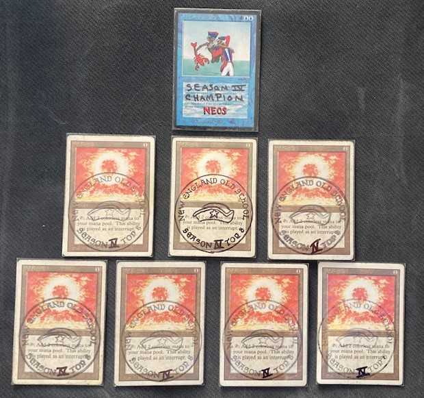 Well, it has certainly been a trying year for all of us. I know it was very hard to be so physically separated from our friends and family. Thankfully, we have all built a wonderful and supportive community that allowed us to interact and compete and enjoy this hobby that we all love so much. It brings me great joy to run this tournament series for all of you, and I hope to continue to do so for as long as possible. Congrats to all of you for being great sportsmen and I hope that in 2021 we can continue to enjoy the Magic, but bring back the Gathering. The NEOS Season 5 will start in February, so be on the lookout for announcements on the New England Old School Facebook Page. Take care of yourself and each other. Cheers — Jared