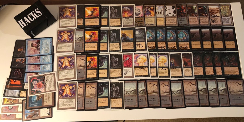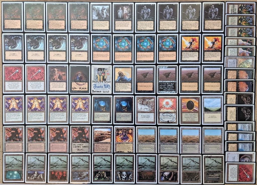 Havenwood 2, a one-day webcam Old School Magic tournament, was held on Saturday, March 20th, 2021. A total of 75 players representing eight different time zones and more than 28 regional Old School clubs participated. Deck construction rules for the event used the Atlantic B&R list. The structure of the event was straight Swiss pairings, 50-minute rounds, just as one might expect at a “real-life” paper tournament. All of the matches for the event were played using Whereby, one of the video chat platforms of choice for the 93/94 webcam scene.