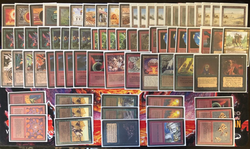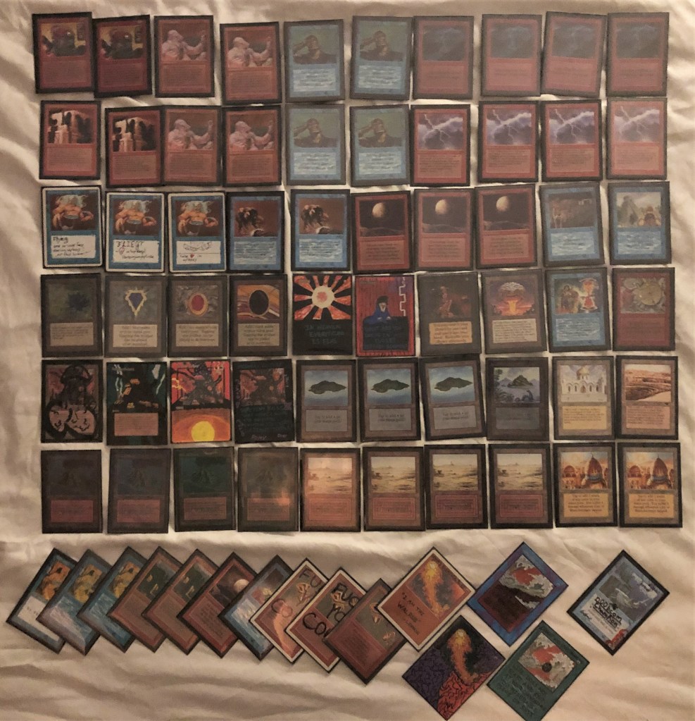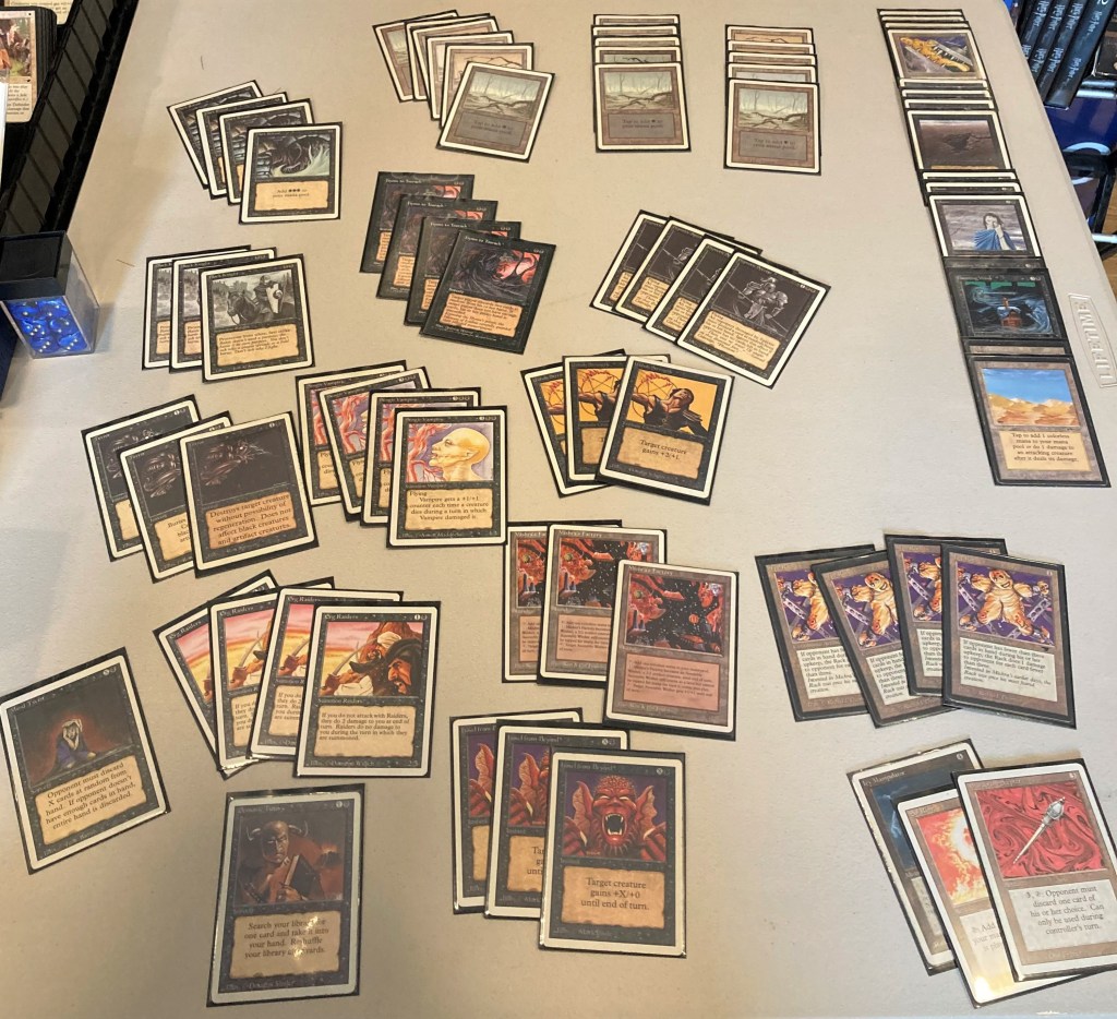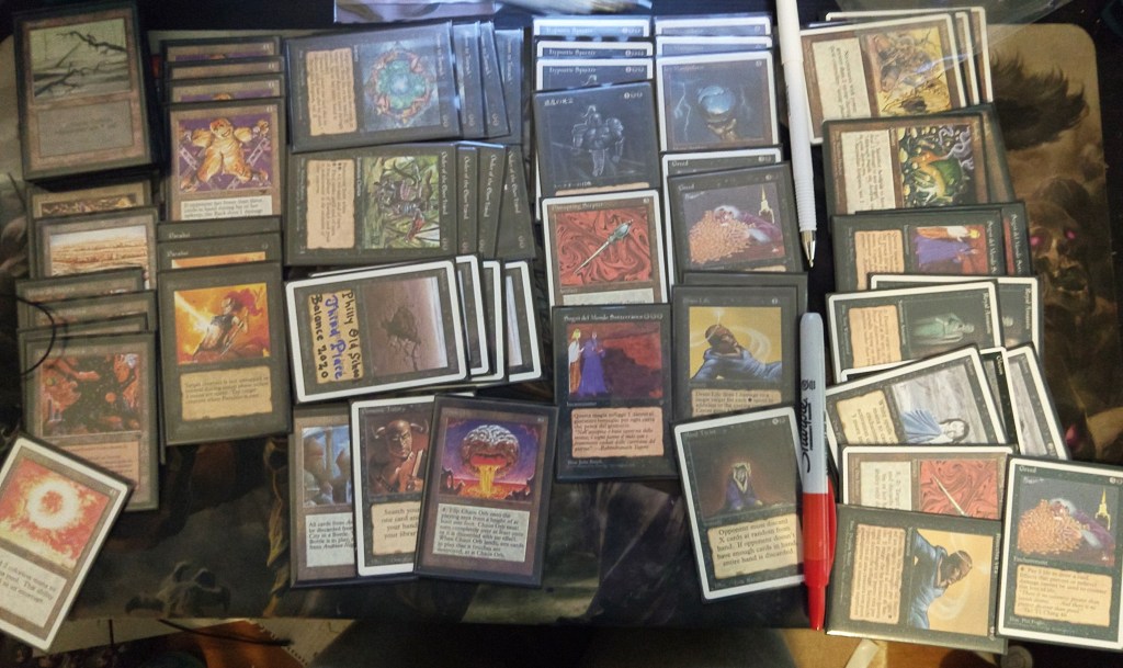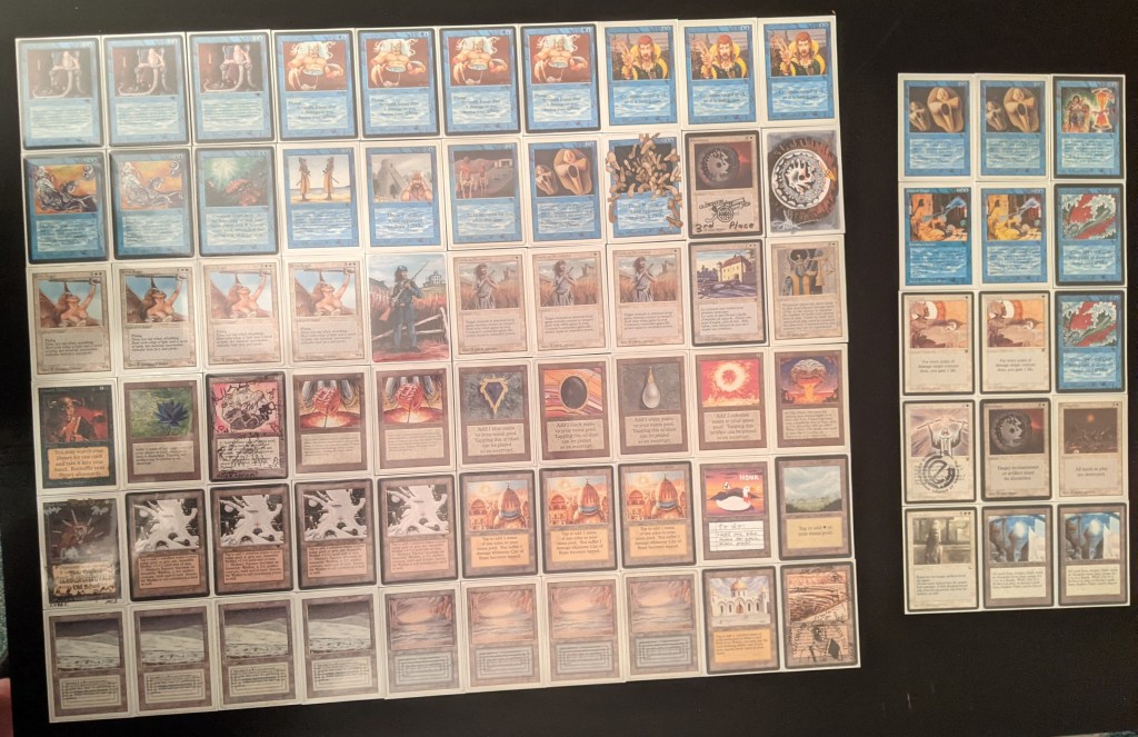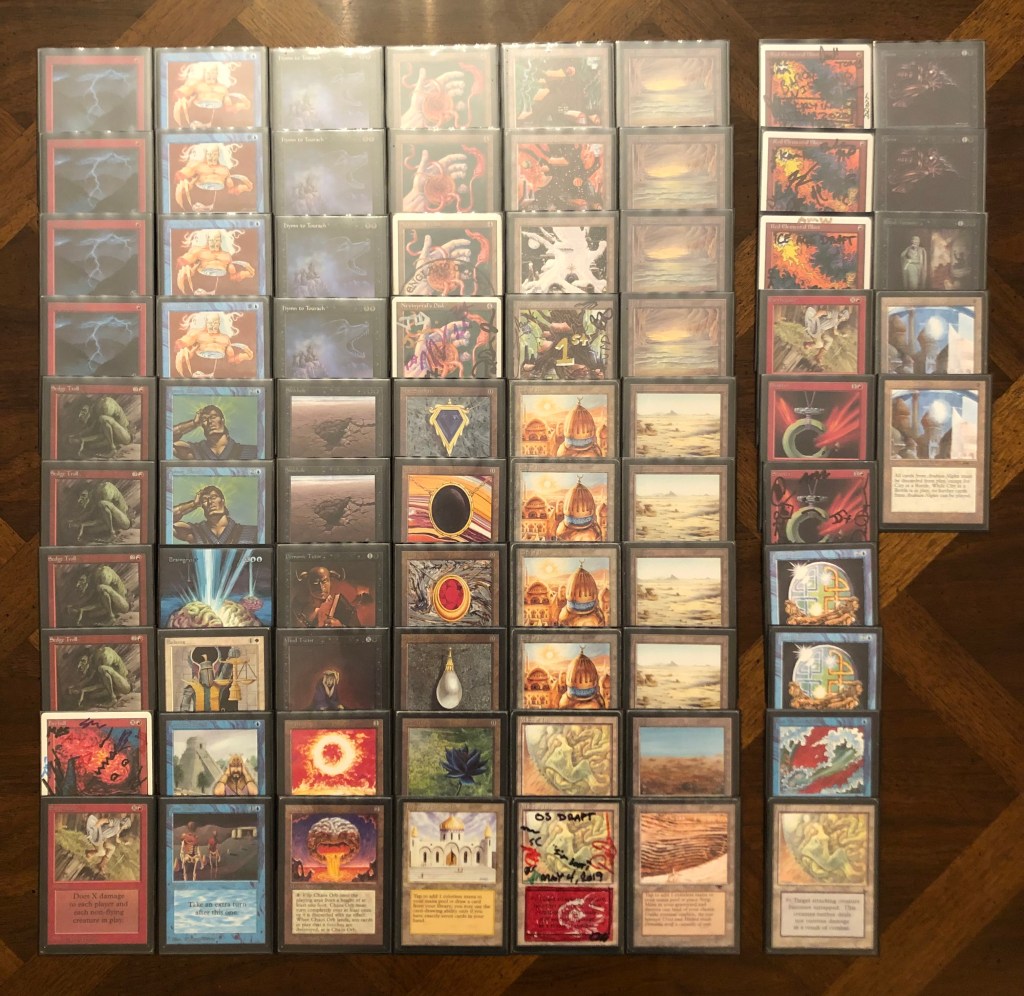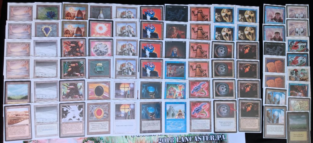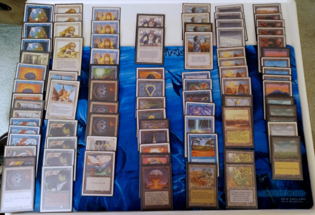 The field was 60 players representing regional Old School clubs including the Sisters of the Flame, Old Order Old School, Philadelphia Old School, the Beasts of the Bay, the Rocky Mountain Yetis, Don’s Goblin Raiders, Team Sped, Canton Old School, and (of course) the Watertown Elementals, the Bristol Brine Hags, and other various subsets of the host club: New England Old School. Deck construction rules for the main event used the Atlantic B&R list. The structure of the tournament was seven rounds, Swiss+1, 50 minute round timer.