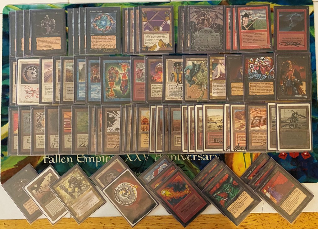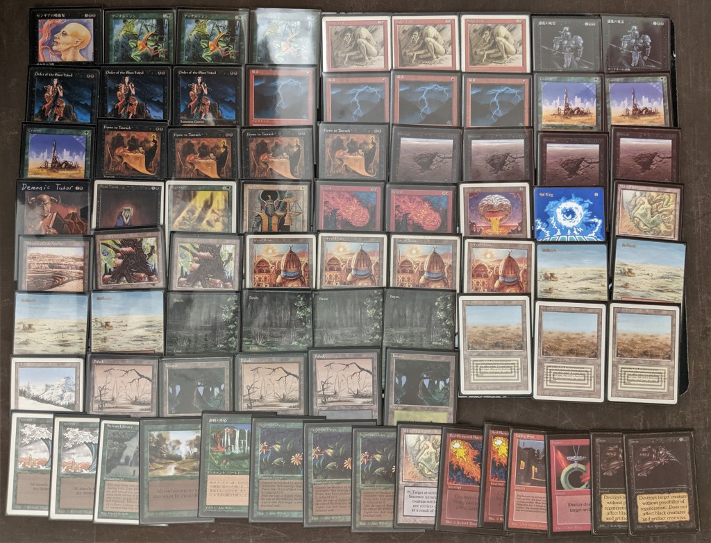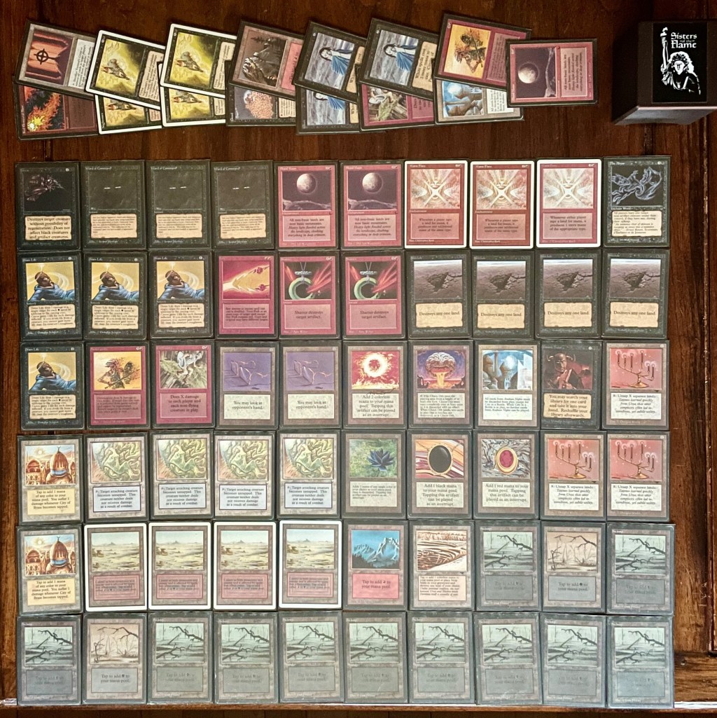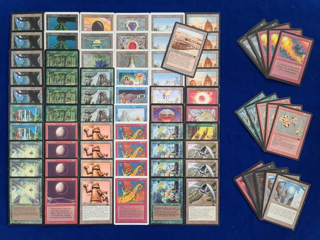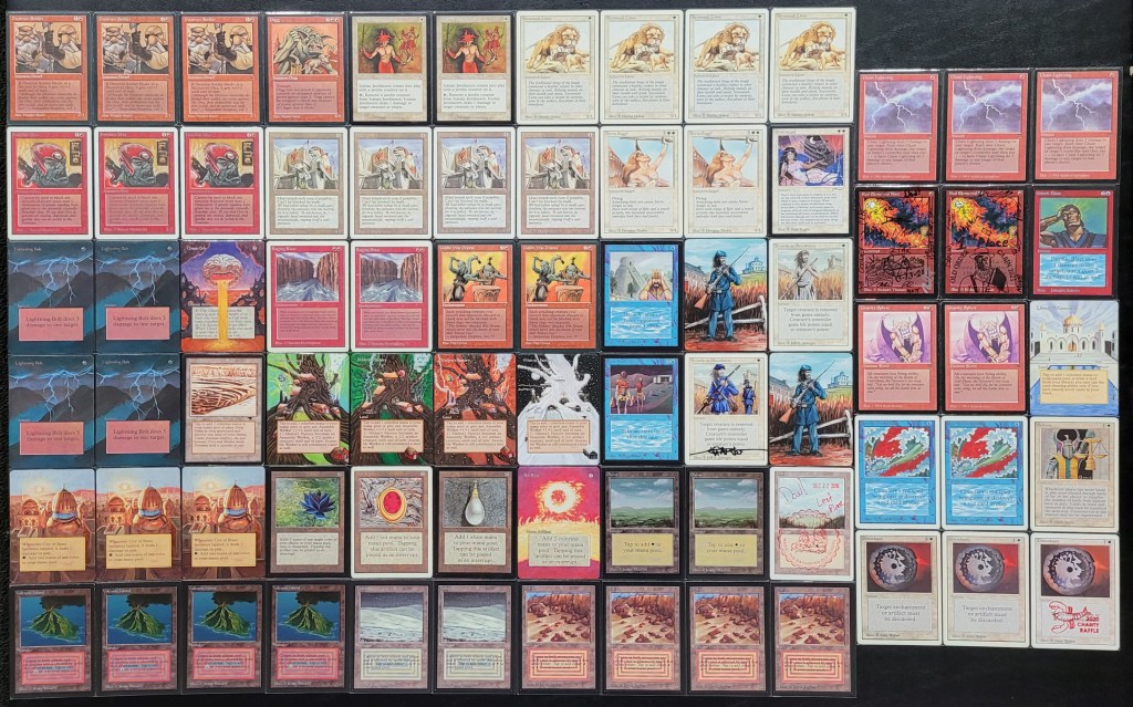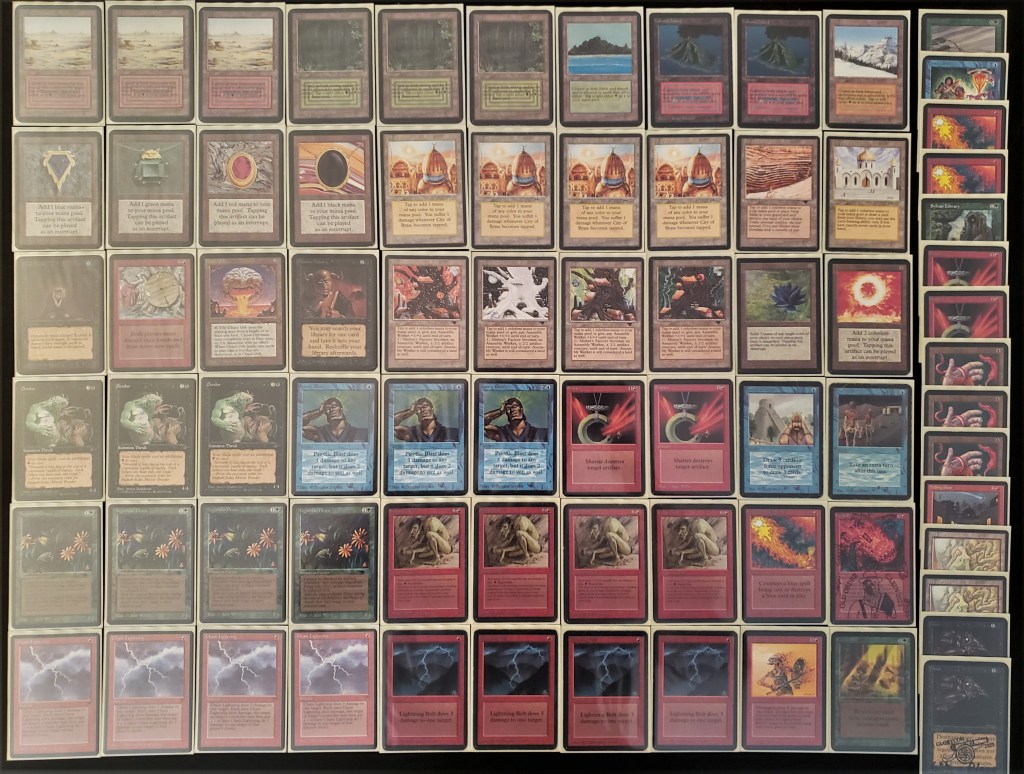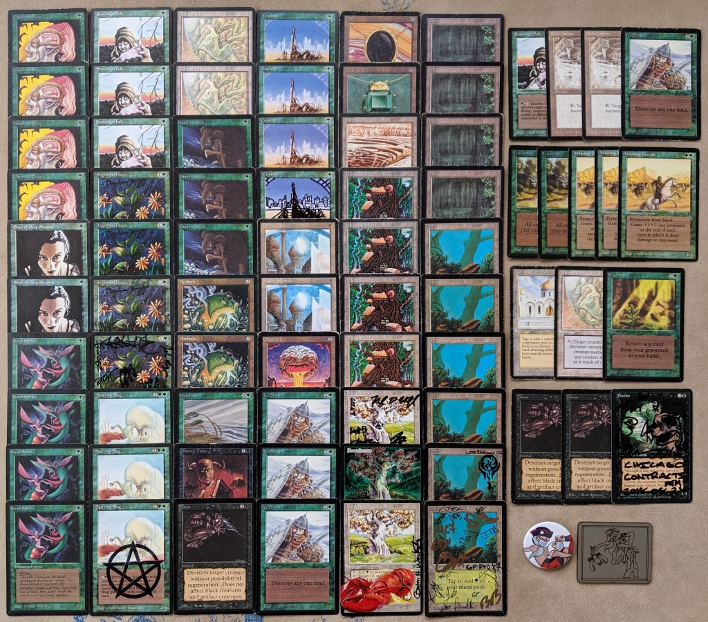 The field was 60 players representing regional Old School clubs including the Sisters of the Flame, Old Order Old School, Philadelphia Old School, the Beasts of the Bay, the Rocky Mountain Yetis, Don’s Goblin Raiders, Team Sped, Canton Old School, and (of course) the Watertown Elementals, the Bristol Brine Hags, and other various subsets of the host club: New England Old School. Deck construction rules for the main event used the Atlantic B&R list. The structure of the tournament was seven rounds, Swiss+1, 50 minute round timer.