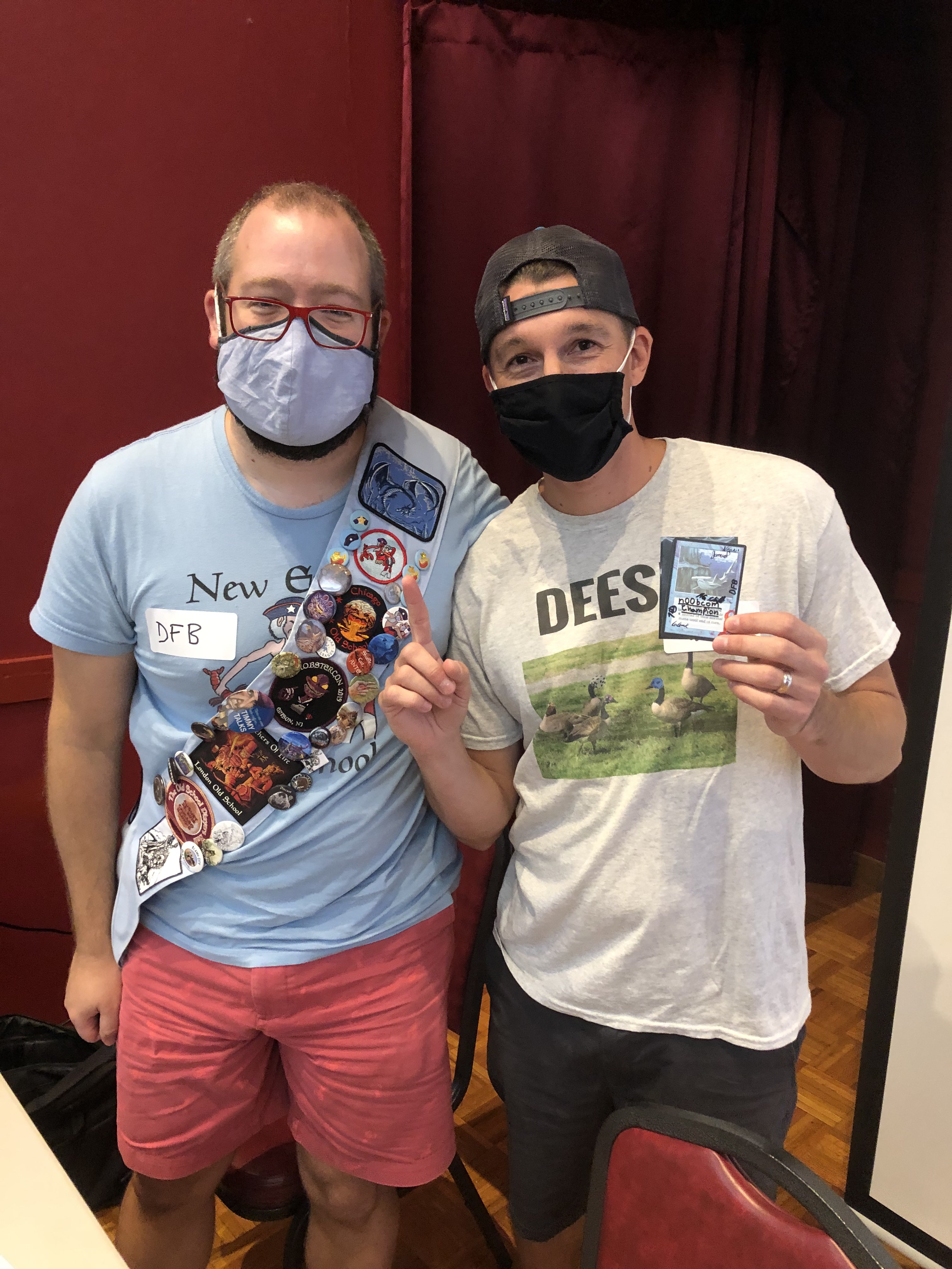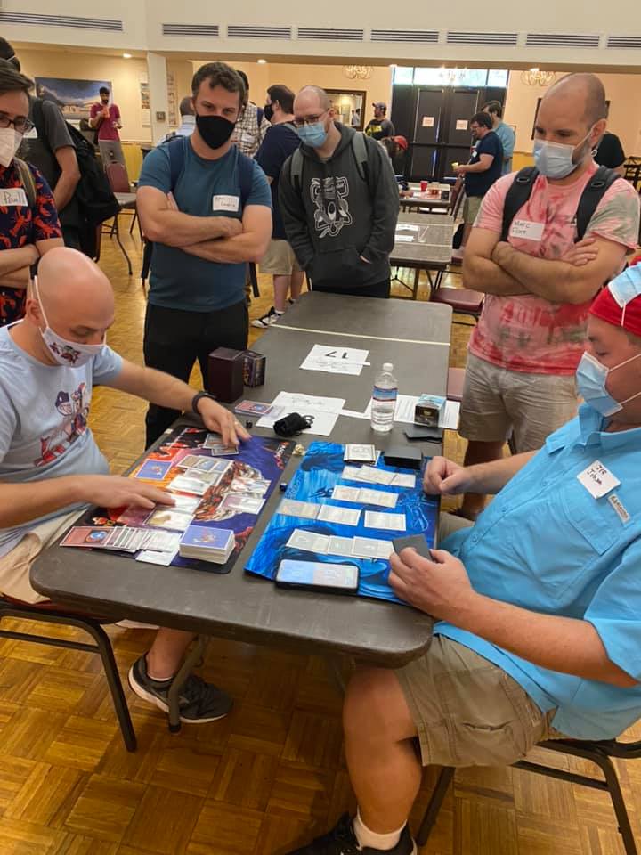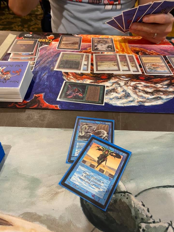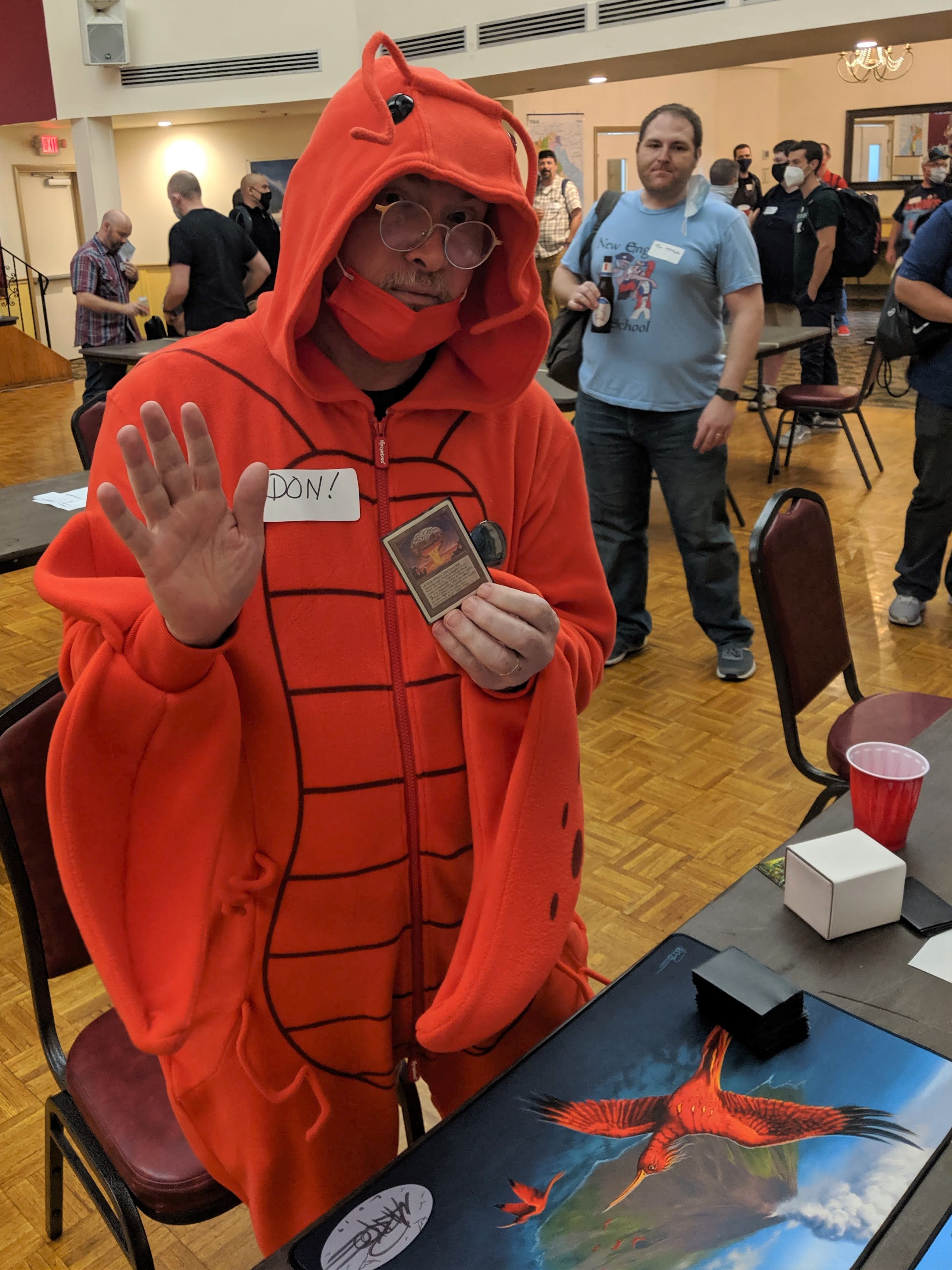 The Saturday main event was a celebration of old Magic cards, spike, spice, seafood, and fierce bro hugs between members of the community, many of whom were reuniting for the first time after several long months without in-person events. Busted plays, wild interactions. Old School alters, swag, and memorabilia raffled off. A guy in a lobster suit. Trade binders at the ready. Old inside jokes, brand new inside jokes. And when the dust settled, a result so predictable as to be reassuring: Will Magrann won the day with some damned Shops deck.