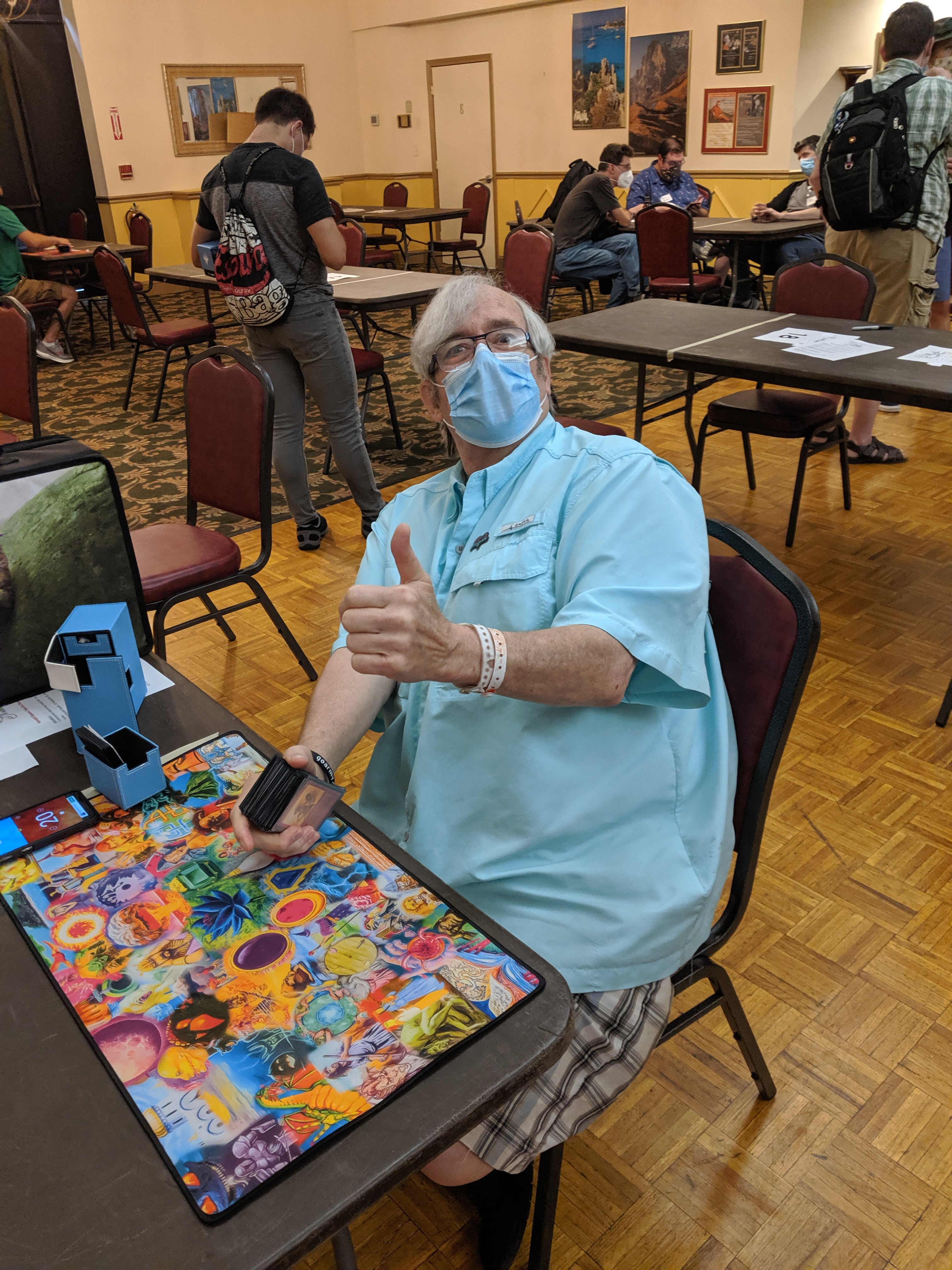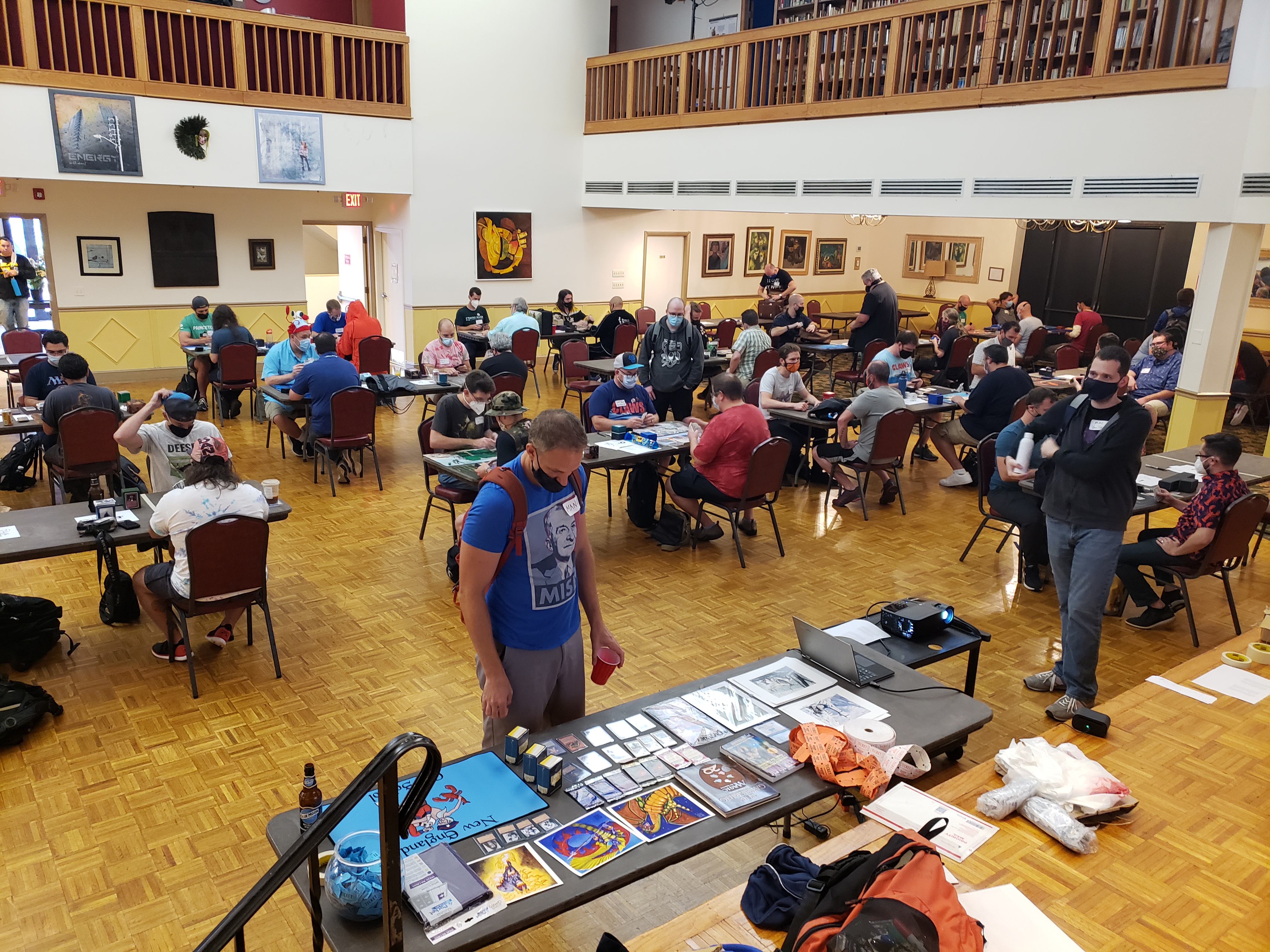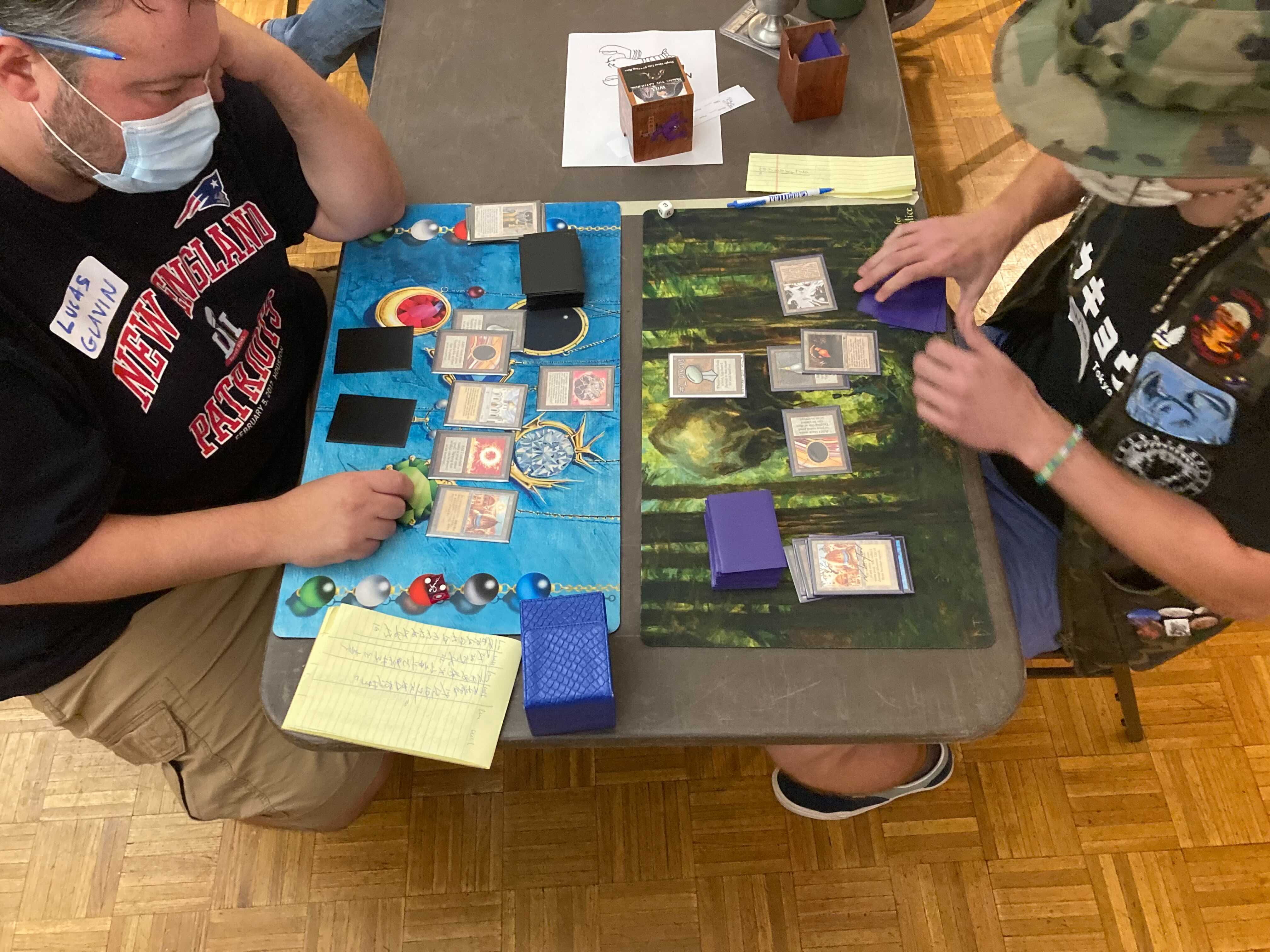 The Saturday main event was a celebration of old Magic cards, spike, spice, seafood, and fierce bro hugs between members of the community, many of whom were reuniting for the first time after several long months without in-person events. Busted plays, wild interactions. Old School alters, swag, and memorabilia raffled off. A guy in a lobster suit. Trade binders at the ready. Old inside jokes, brand new inside jokes. And when the dust settled, a result so predictable as to be reassuring: Will Magrann won the day with some damned Shops deck.