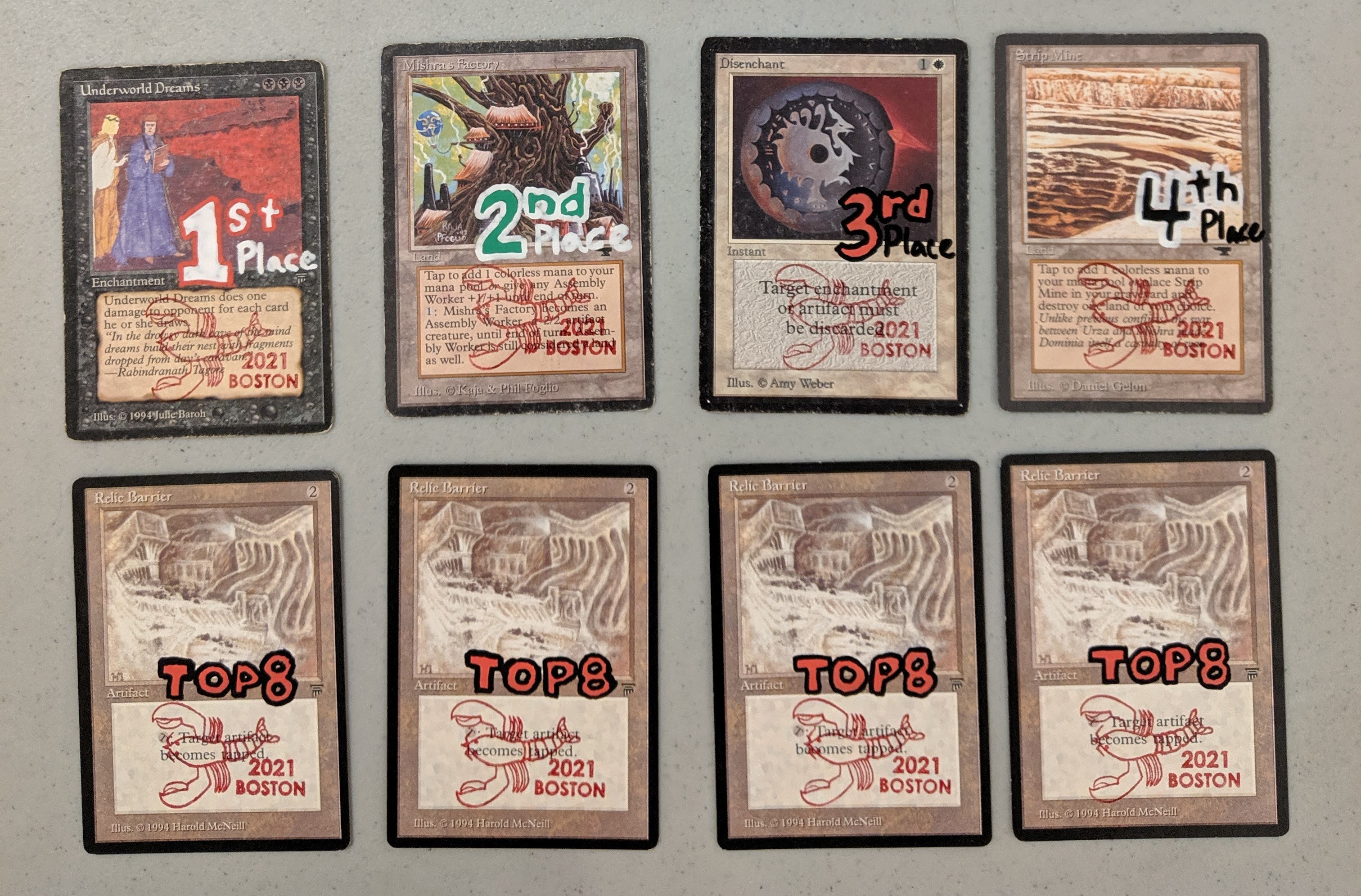 The LC Invitational was the result of an outpouring of countless hours and straight-up value from so many members of the Old School community. Gratitude this year has to go first and foremost to NEOS lead organizer Jared Doucette, who took on the mantle of “LobsterJudge” during the main event, in addition to his regular rafflemaster duties and running the Premodern event the night before. Deepest appreciation is also due to this year’s Homarid Warriors: Stephen Hartford, Mike Frantz, Ryan Lauria, Scott Bradley, Andrew Walker, and James Lebak, along with everyone else who spontaneously dove in to pick up the slack on some task or another throughout the weekend. And to our raffle prize donors: Jeff Menges, David McKinven (Mack Lotus Alters), David Muenzer (SK Altered), Gerard Siatkowski and Anders Schmidt (AS Alters), Cam Wall, Nick Viau, Shaman Ben Perry, Mario Murr (@Merhans), Parker Schaffel (@bucki4lyfe), Mike Frantz, Matt Gazda, Peter Magnin, Adam Merkado, Andy Blaufarb, Rich Bourque, Scott Bradley, Tim Moran, Jimmy Johnson, and anyone else I might have accidentally omitted here — you made this fundraiser a success, and it would have been literally impossible for us to make this level of impact in the lives of economically disadvantaged families in Greater Boston without you giving so freely of your time and passion. Thank you. Thank you. Thank you.