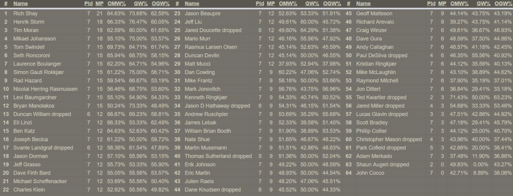 When the dust had settled, Rich Shay went 7-0, taking 1st place with his spin on “Keeper” aka The Deck. Kenneth Ringkjær of the Drain Life Crew was declared the SPICEMASTER with his Chains of Mephistopheles / Island Sanctuary pile. Prizes were awarded to the top four finishers (who all ended 6-1 or better on the day) as well as the top three spicers. Rasmus Larsen Olsen of the Drain Life Crew notched Best Unpowered on the day, coming in 27th overall (4-3) with his Gb Berserk brew.