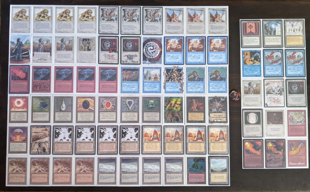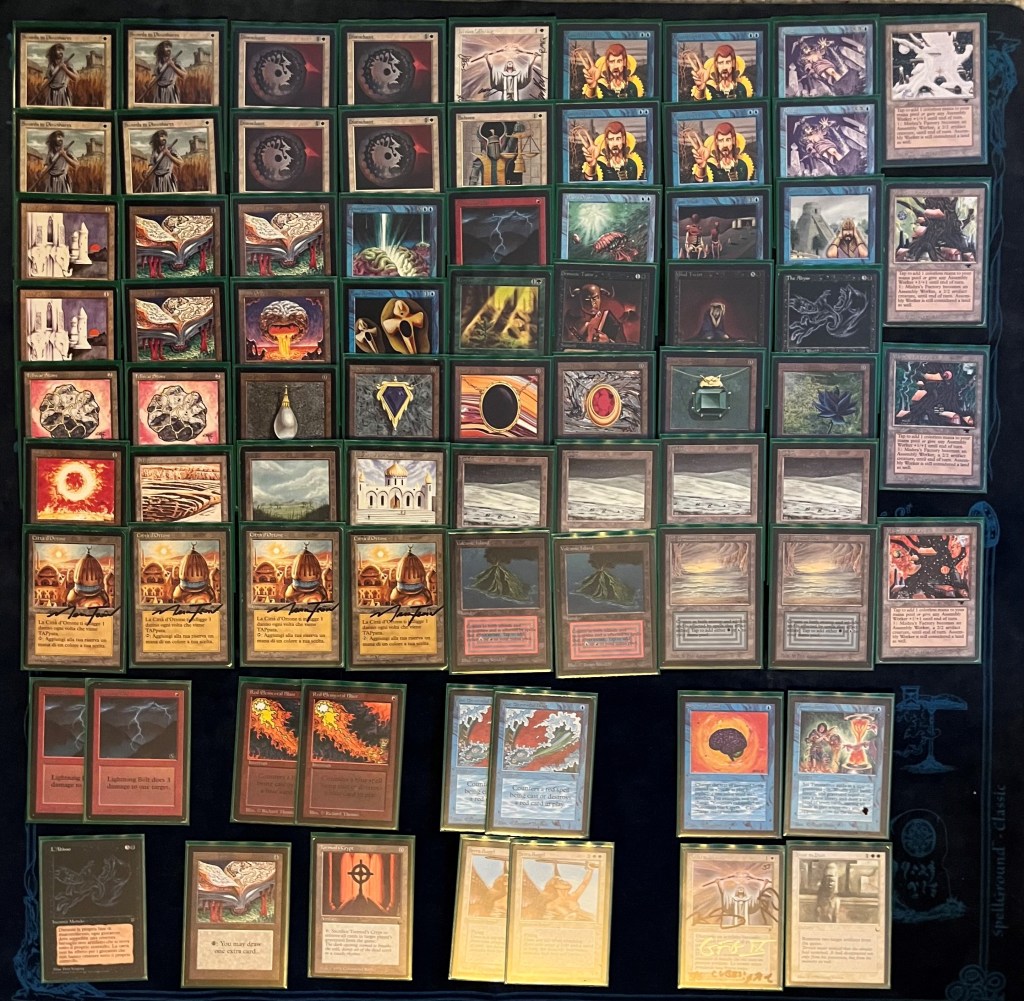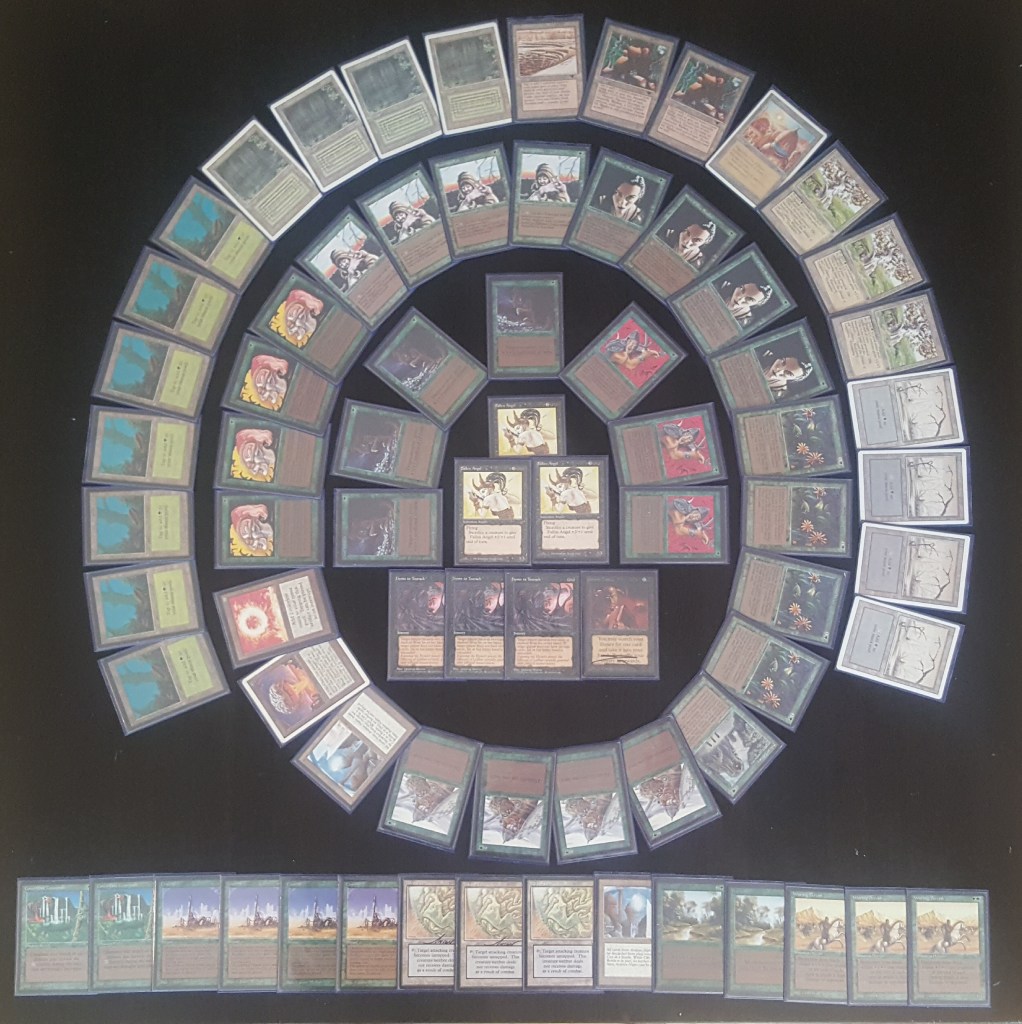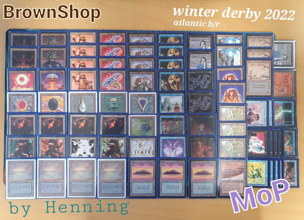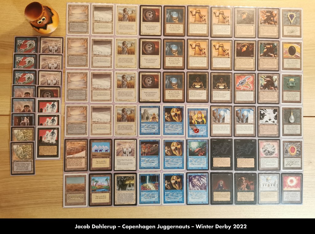 The Derby series rotates between different 93/94 format variants every six months. Past Derby events have used the Swedish, Atlantic, and 4-Strip B&R lists (including Eternal Central, Pacific, and Boreal). This instance of the Winter Derby was played using the Atlantic 93/94 B&R list, allowing the full range of original art/old card frame re-prints (Revised, 4th/Chronicles, CE/IE, FBB/FWB, etc.).