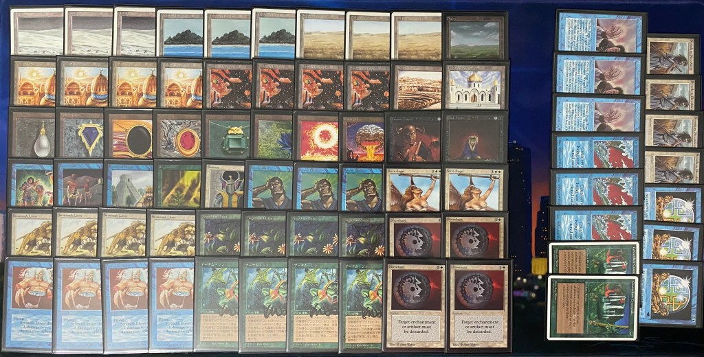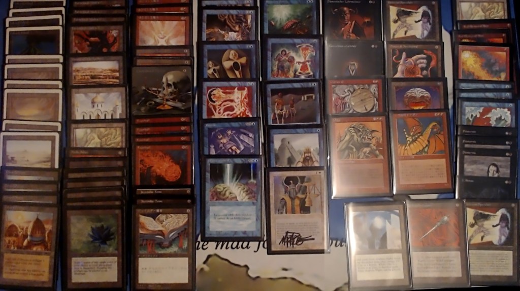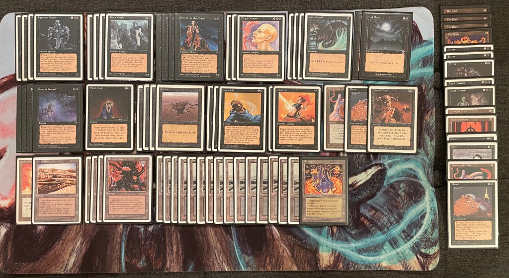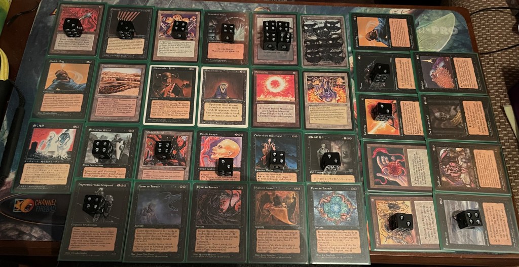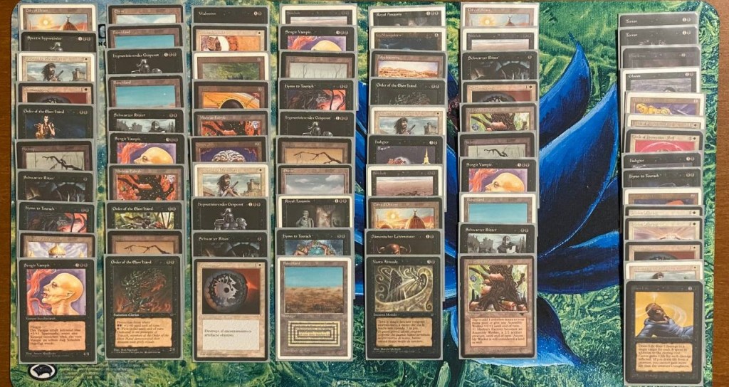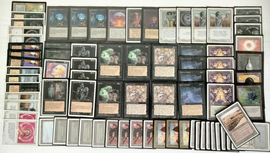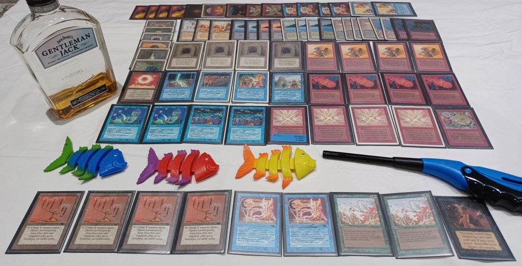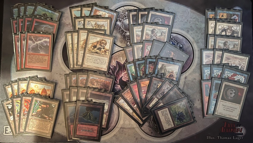 The Derby series rotates between different 93/94 format variants every six months. Past Derby events have used the Swedish, Atlantic, and 4-Strip B&R lists (including Eternal Central, Pacific, and Boreal). This instance of the Winter Derby was played using the Atlantic 93/94 B&R list, allowing the full range of original art/old card frame re-prints (Revised, 4th/Chronicles, CE/IE, FBB/FWB, etc.).
