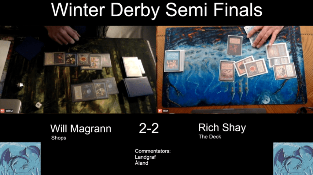Pairings were released in two batches in late December and early January, with all participants asked to schedule and play eight individual matches in about four weeks. After the batches were completed, a winnowed field of 16 players advanced to a single-elimination bracket. The Winter Derby Finals were played on Sunday, February 6th, and featured a The Deck mirror between Koos Cramer of the Dutch Old School Guild (Netherlands) and Rich Shay of NEOS (USA).