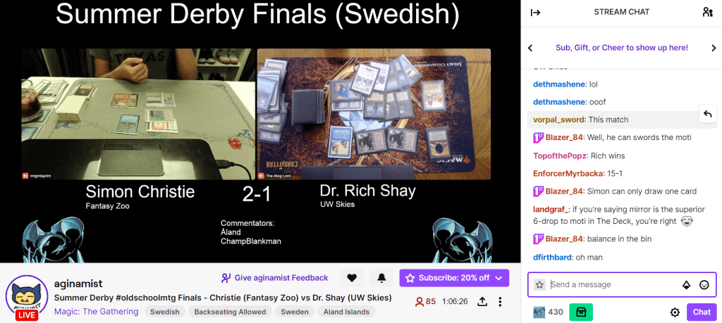 For anyone interested in future events, or just trying out webcam Old School Magic for the first time, please consider joining our online community of players! People are always looking for pick-up games in our Facebook group and in the #down-to-play channel on the Old School Discord(s).