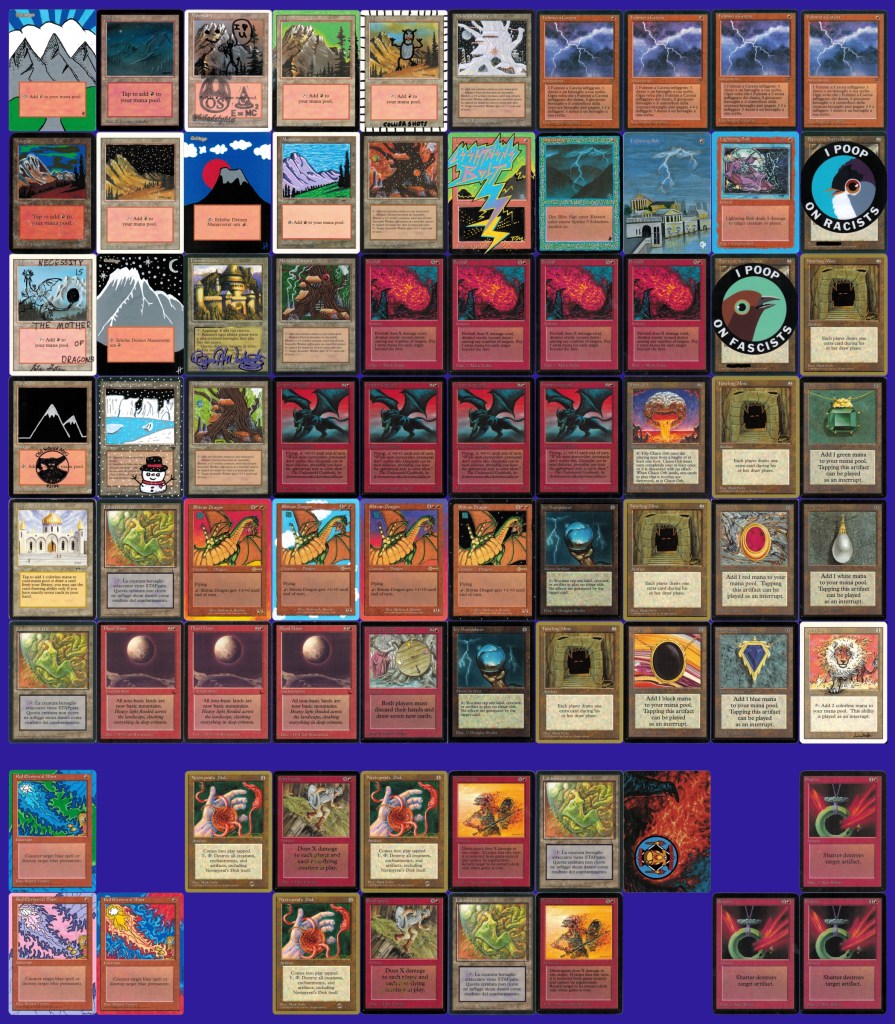 The Derby series rotates between different 93/94 format variants every six months. Past Derby events have used the Swedish, Atlantic, and 4-Strip B&R lists (including Eternal Central, Pacific, and Boreal). This instance of the Summer Derby was played using the Swedish 93/94 B&R list, allowing the full range of original art/old card frame re-prints (Revised, 4th/Chronicles, CE/IE, FBB/FWB, etc.).