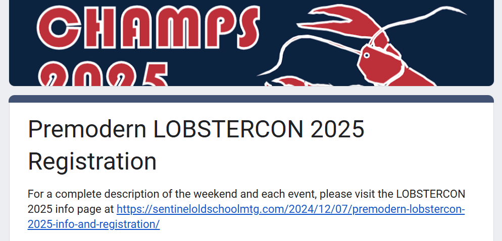 Registration for Premodern LOBSTERCON 2025 will open at 10:00 AM Eastern on Sunday, December 15.