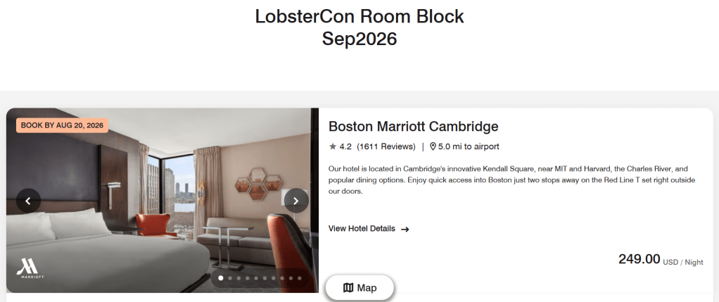 The tournament venue is in Kendall Square, which is served by the MBTA Red Line, providing easy accessibility from other points in/around Boston, including Alewife Station parking garage and South Station. There will also be all-day off-street parking available at the One Kendall Square Garage — and the Dante’s discounted rate is BACK for 2026, with $10 all-day parking validation for LOBSTERCON attendees.
